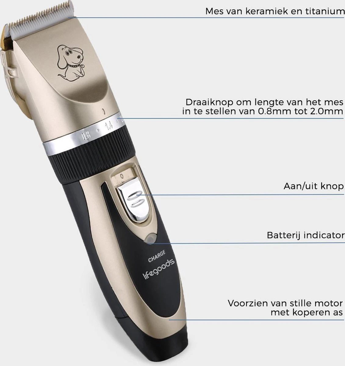 Met deze krachtige dierentondeuse verlos je jouw hond of kat binnen een mum van tijd van die dikke laag vacht. Zo geef je jouw troeteldier een mooie frisse en gezonde look! De LifeGoods dierentondeuse is super krachtig, oplaadbaar en gemakkelijk schoon te maken. Je huisdier trimmen is nog nooit zo gemakkelijk en leuk geweest met deze krachtige tondeuse!